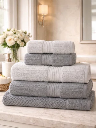 Jogo De Toalhas 5 Peças Fio Penteado e Canelado Buddemeyer Cinza