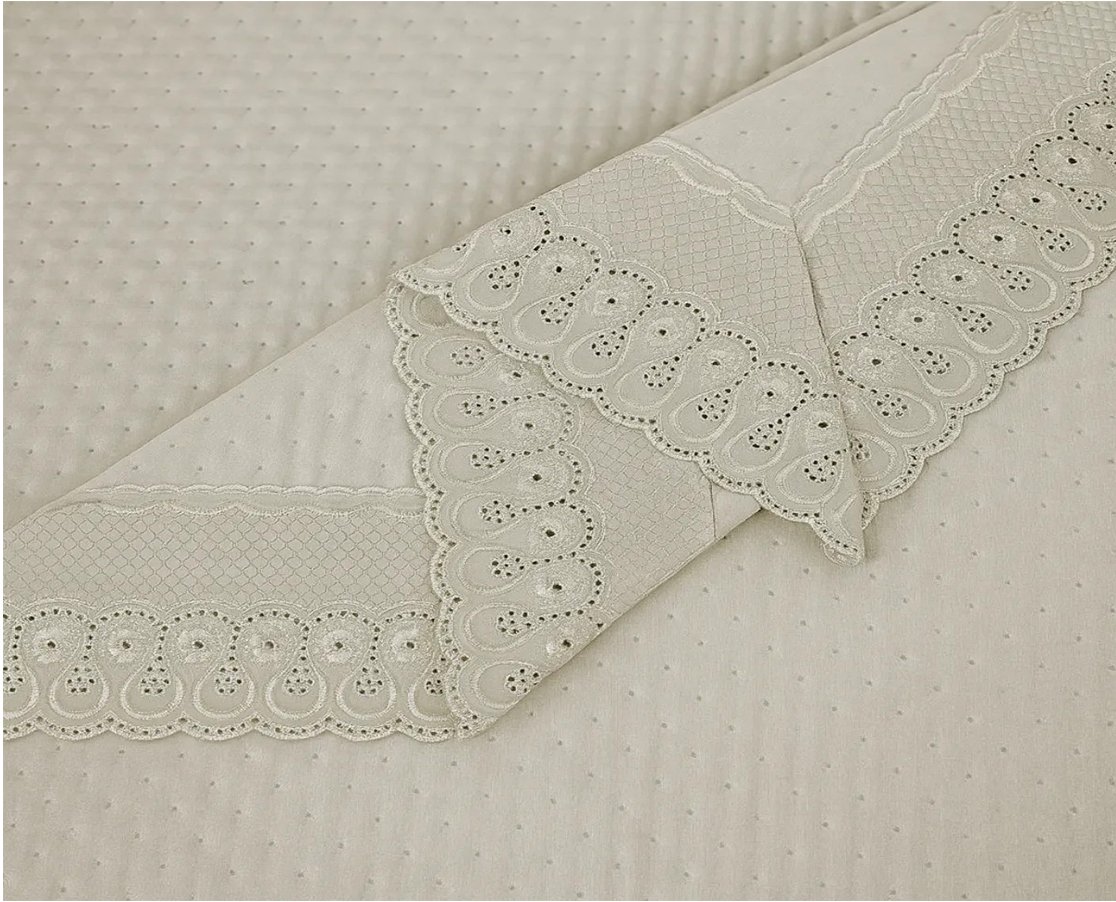 Kit Colcha Casal 2,20x2,40 Flora Renda Habitat Bege