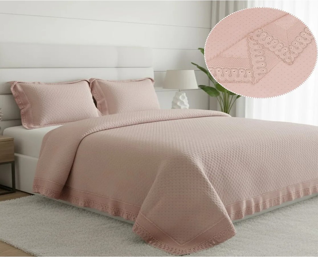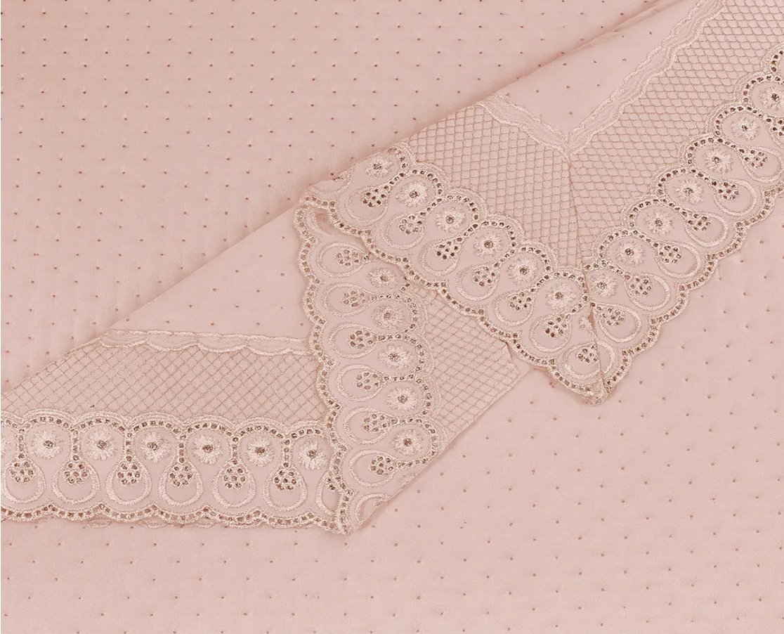 Kit Colcha Casal 2,20x2,40 Flora Renda Habitat Rosa