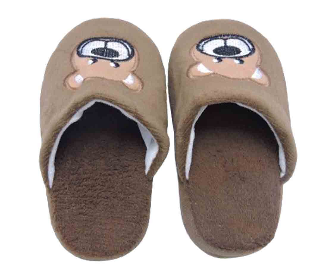 Pantufa Peluciada Unissex Infantil Bordada H13771 Center Marrom