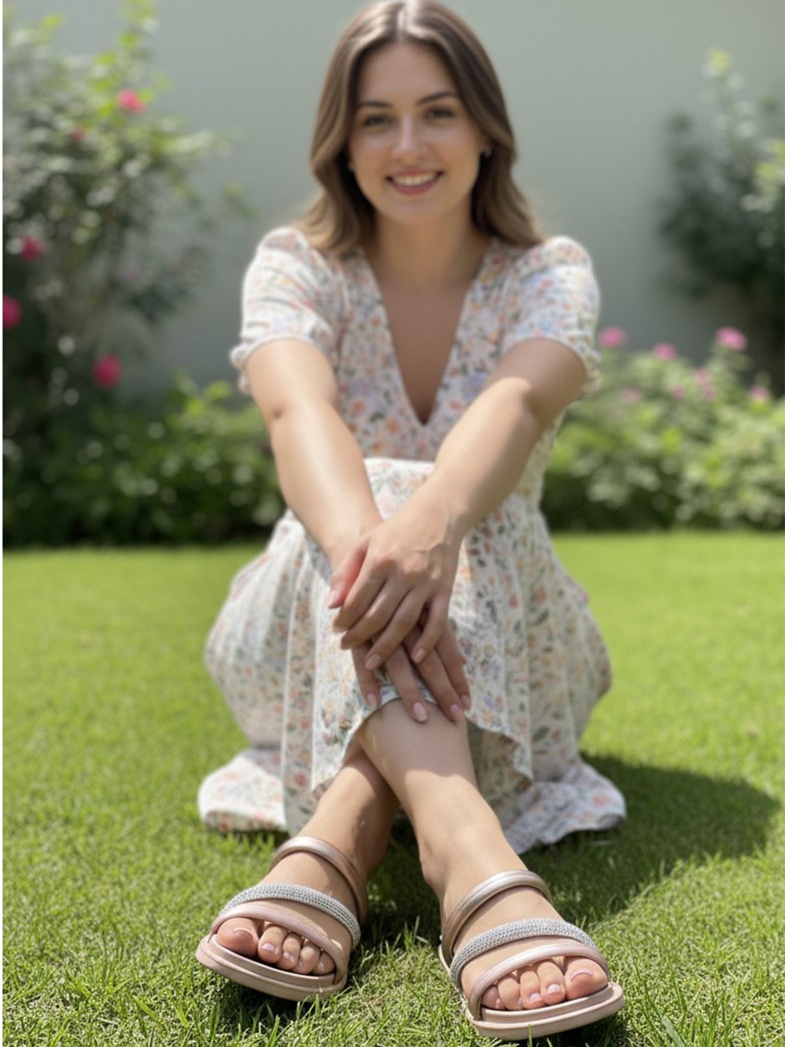 Papete Feminina Adulto Com Strass 8488.108 Beira Rio Ouro Rosado e Cristal