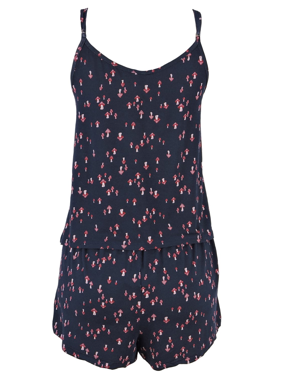 Pijama Curto Feminino Adulto De Malha Estampa Cogumelo V791M Vila Flor Marinho
