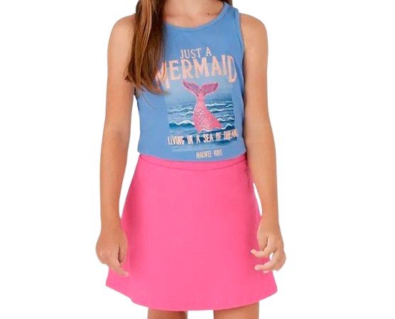 A Regata Infantil Feminina Just A Mermaid da Malwee Kids é um convite para soltar a imaginação e sonhar com o fundo do mar. Confeccionada em 100% algodão, garante conforto e leveza, perfeita para os dias quentes. O destaque fica por conta da estampa com glitter “Just A Mermaid”, que traz encanto, diversão e um toque mágico ao visual. Possui decote redondo com acabamento em viés do mesmo tecido, unindo praticidade e delicadeza em uma peça cheia de estilo.