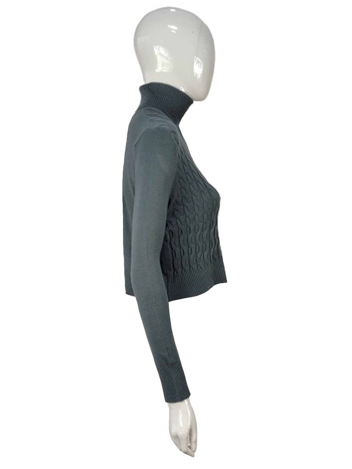 Suéter Feminino Adulto de Tricot Gola Alta 87.11.0124 Mosaico Verde Escuro