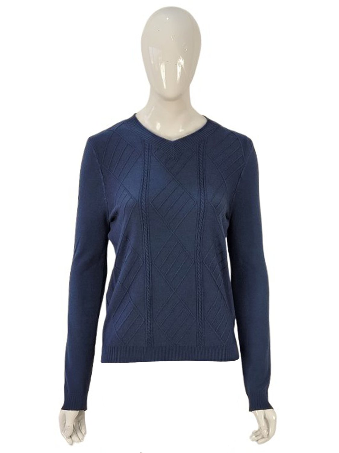 Suéter Feminino Adulto de Tricot Gola V 87.10.0154 Mosaico Marinho
