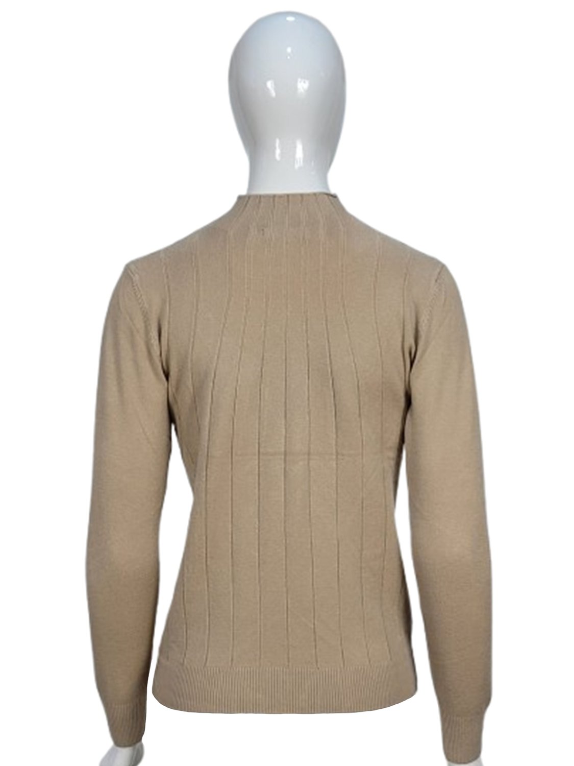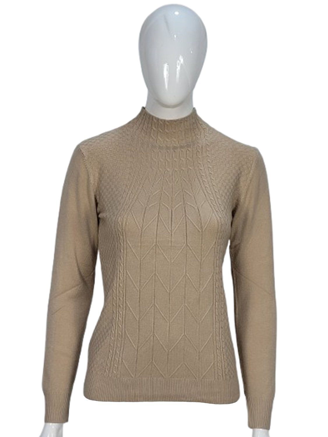 Suéter Feminino Gola Alta Modal trabalhado 2452 Dunialin Bege