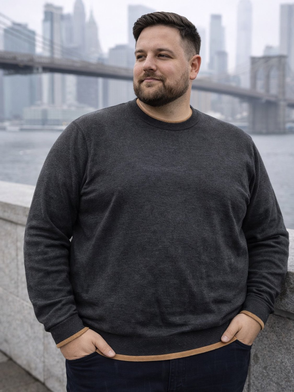 Com modelagem desenvolvida especialmente para o público plus size, proporciona ajuste adequado sem abrir mão da liberdade de movimentos. A gola redonda clássica confere um visual atemporal, perfeito para compor produções casuais ou mais alinhadas, podendo ser usado sozinho ou sobreposto a camisas.