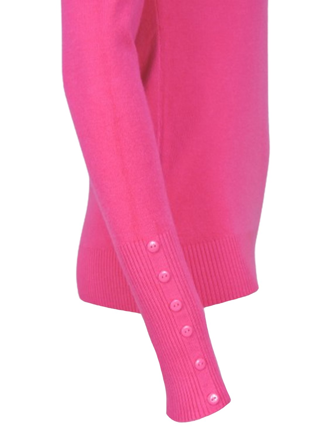 Suéter Tricô Feminino Detalhe Punho Com Botões 2453 Dunialin Pink