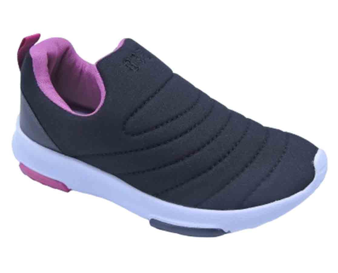 Tênis Calce Fácil Feminino Juvenil G-274 Gibizinho Preto E Pink