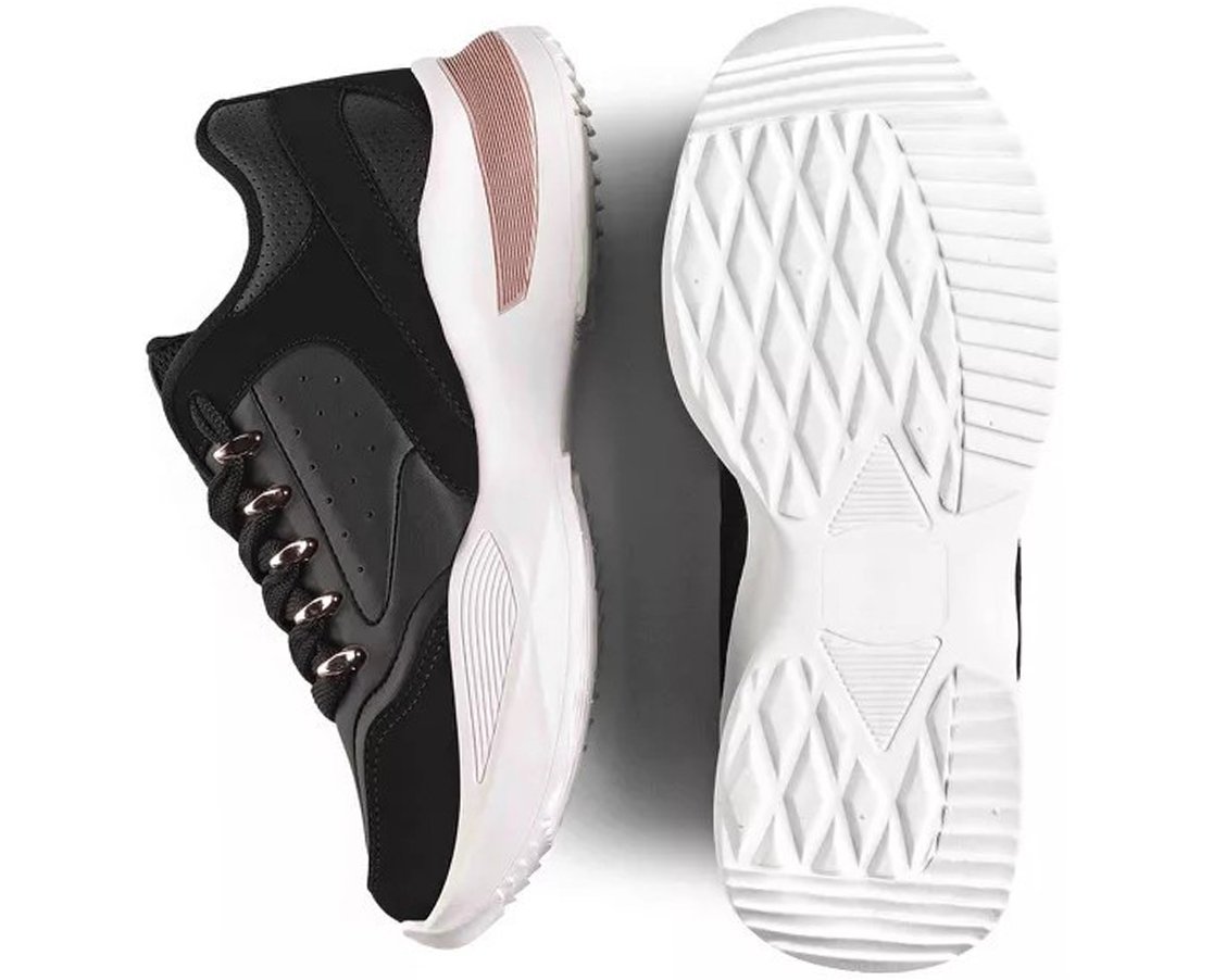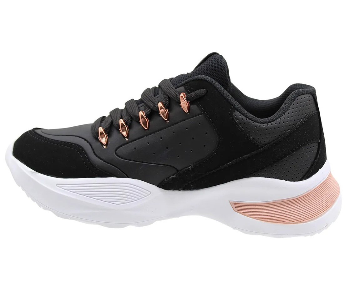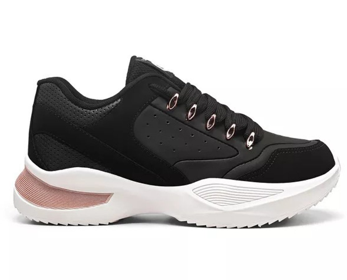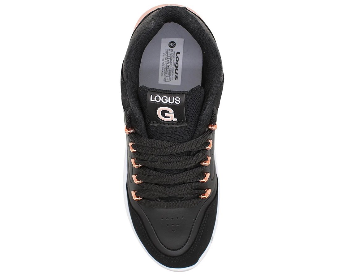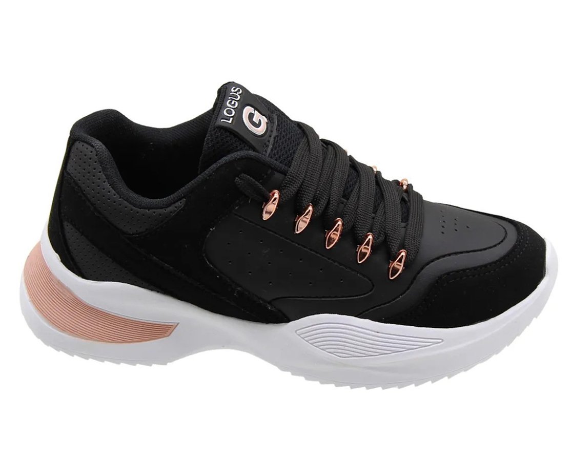 Tênis Feminino Casual Flamê 22490P Logus Preto e Rosê