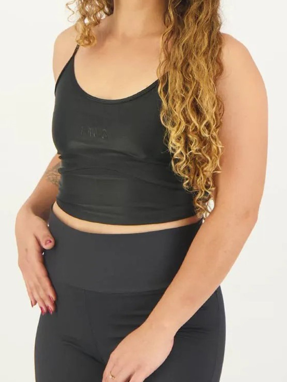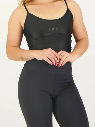 Top feminino confeccionado em malha de poliamida e elastano com aspecto shine. Modelagem alongada de baixa sustentação sem elástico na barra. Produto ecológico com certificado Oeko-Tex, que testifica o não uso de químicos nocivos na sua fabricação. Contém a tecnologia FLOW, que proporciona secagem rápida e mantém o corpo na temperatura ideal para a prática esportiva, e a tecnologia PERFORMA, que oferece a compressão perfeita para liberdade de movimento e performance, sem perder o conforto. Possui forro de poliamida com elastano, costuras sem atrito com o corpo, curvatura anatômica na parte frontal, alças finas com acabamento em viés pespontado e logo Fila Letter em silicone centralizado na parte frontal.