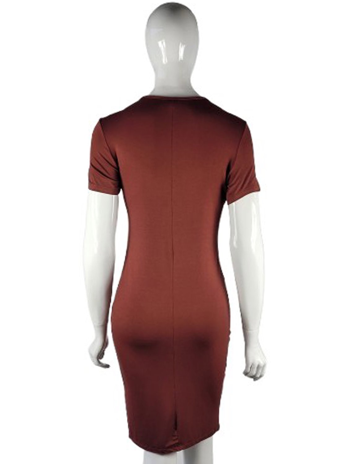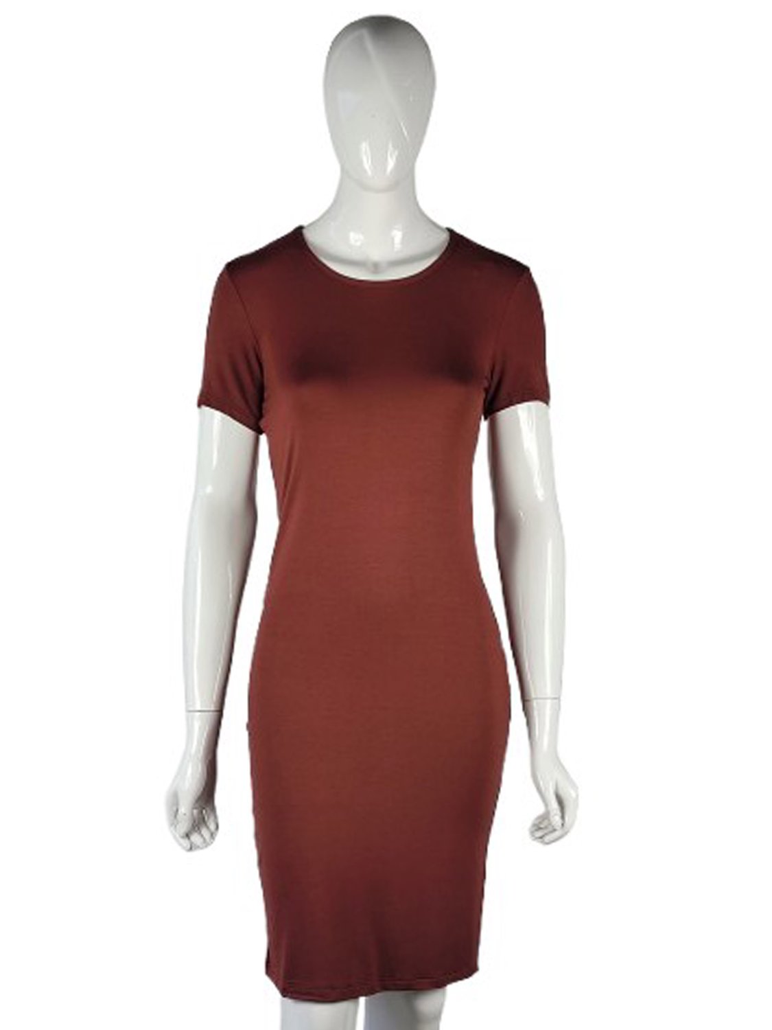 Vestido Básico Feminino Manga Curta Em Viscose Stretch 1000089473 Malwee Marrom